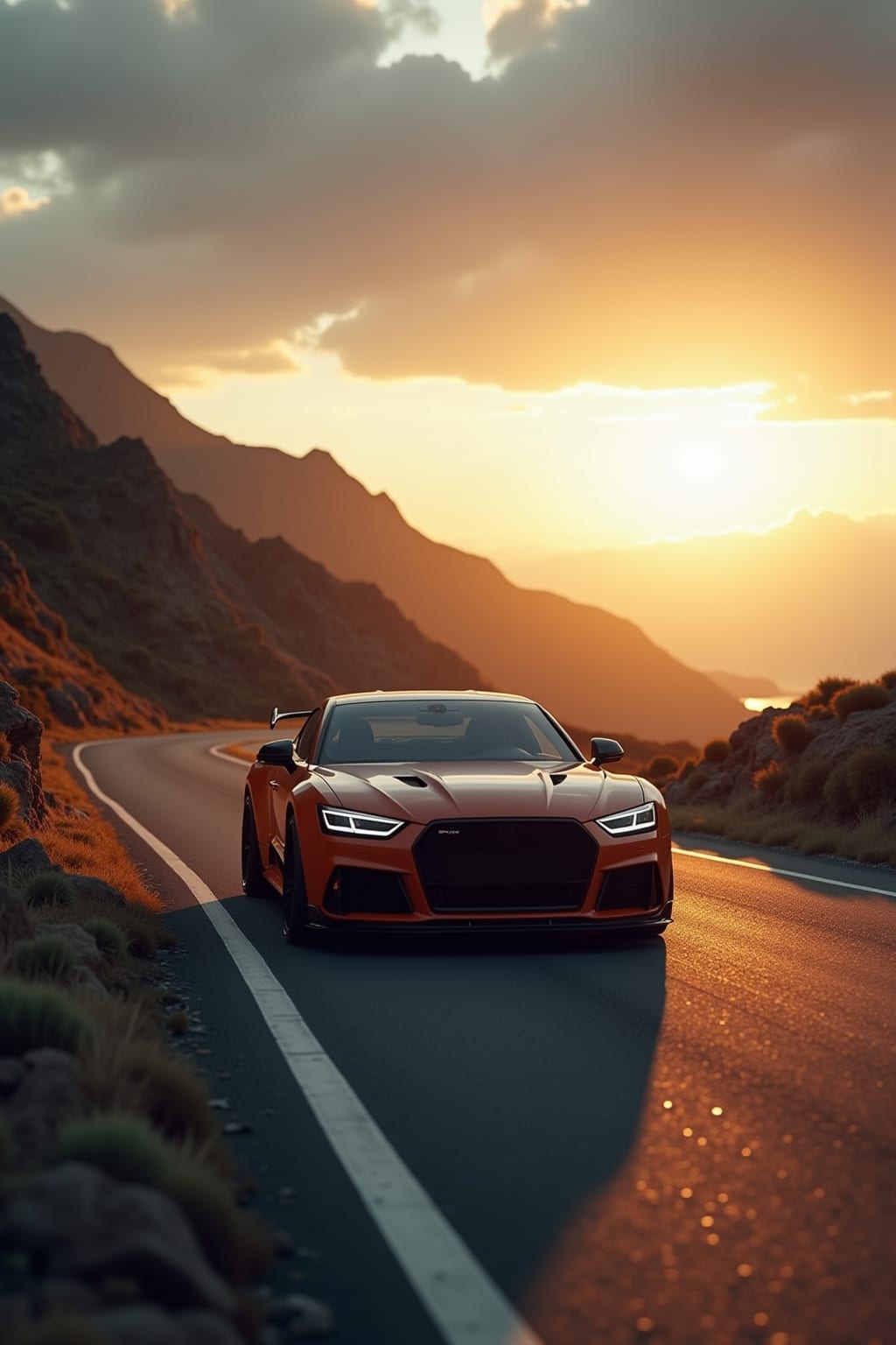 Die goldene Stunde (kurz nach Sonnenaufgang/vor Sonnenuntergang) bietet das beste Licht für Auto-Fotos mit warmen Tönen.
