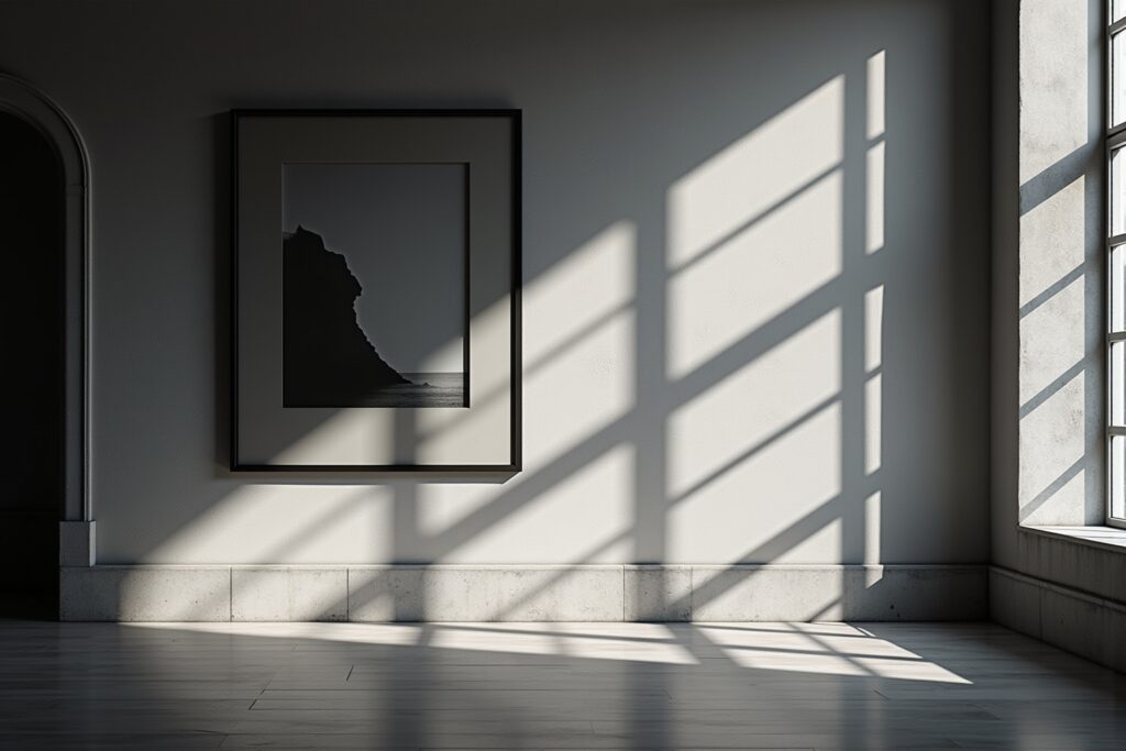 Die Wahl des richtigen Rahmens hängt vom Stil deiner Fotos und deiner Einrichtung ab. Schwarze oder weiße Rahmen sind oft eine gute Wahl, da sie die Klarheit und Eleganz der Schwarz-Weiß-Fotografie unterstreichen. Holzrahmen können eine wärmere und natürlichere Note verleihen. Metallrahmen wirken modern und minimalistisch. Wichtig ist, dass der Rahmen nicht zu dominant ist und das Bild in den Hintergrund drängt.
